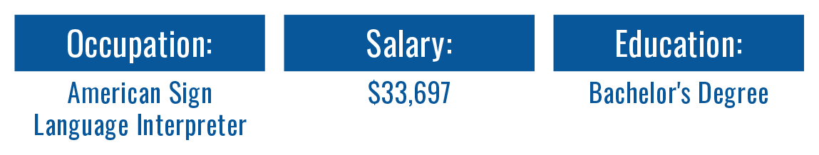 "I initially didn't see this as my career path. I didn't even know it was an option. What I did know was that I like learning different languages. I was taught Spanish at home, and now I'm fluent in both Spanish and English. In high school, I took ASL classes, which I really enjoyed, so I continued learning while I was in college.