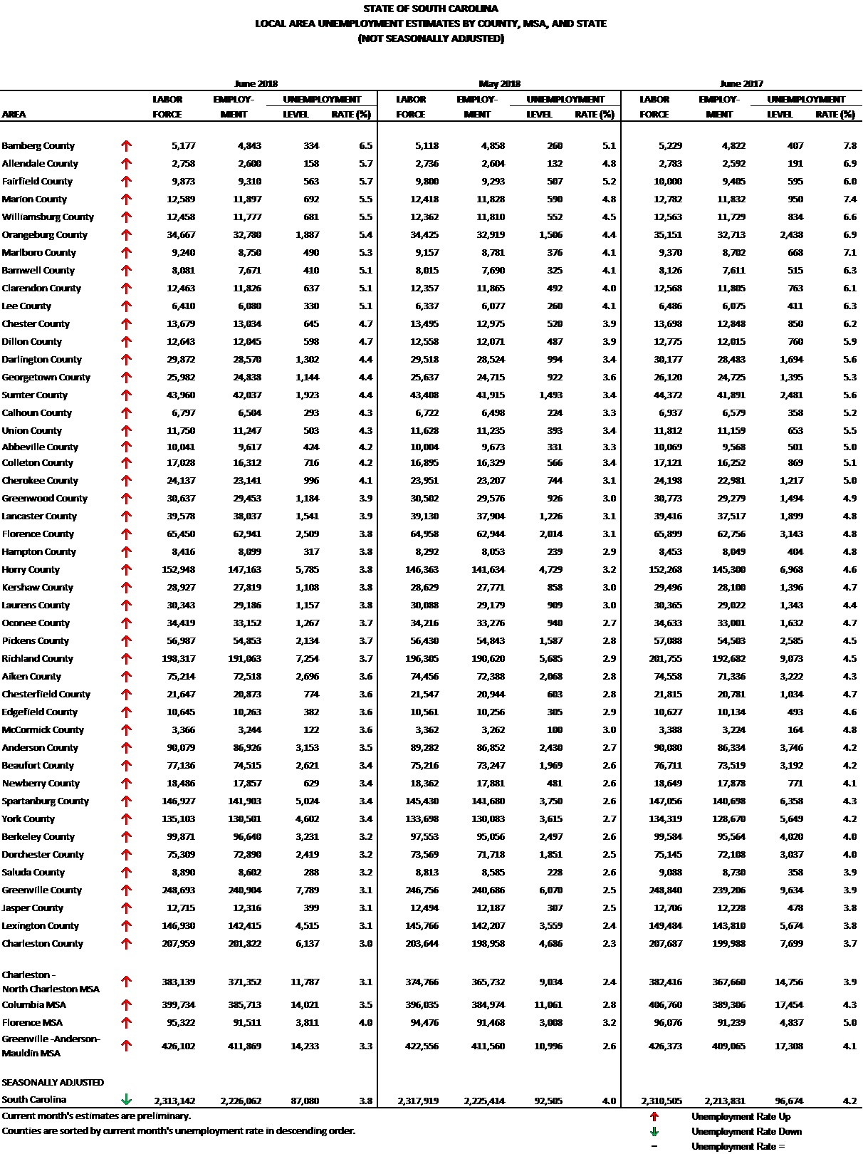 From June 2017 to June 2018, South Carolina’s economy has added 35,200 seasonally adjusted non-farm jobs.